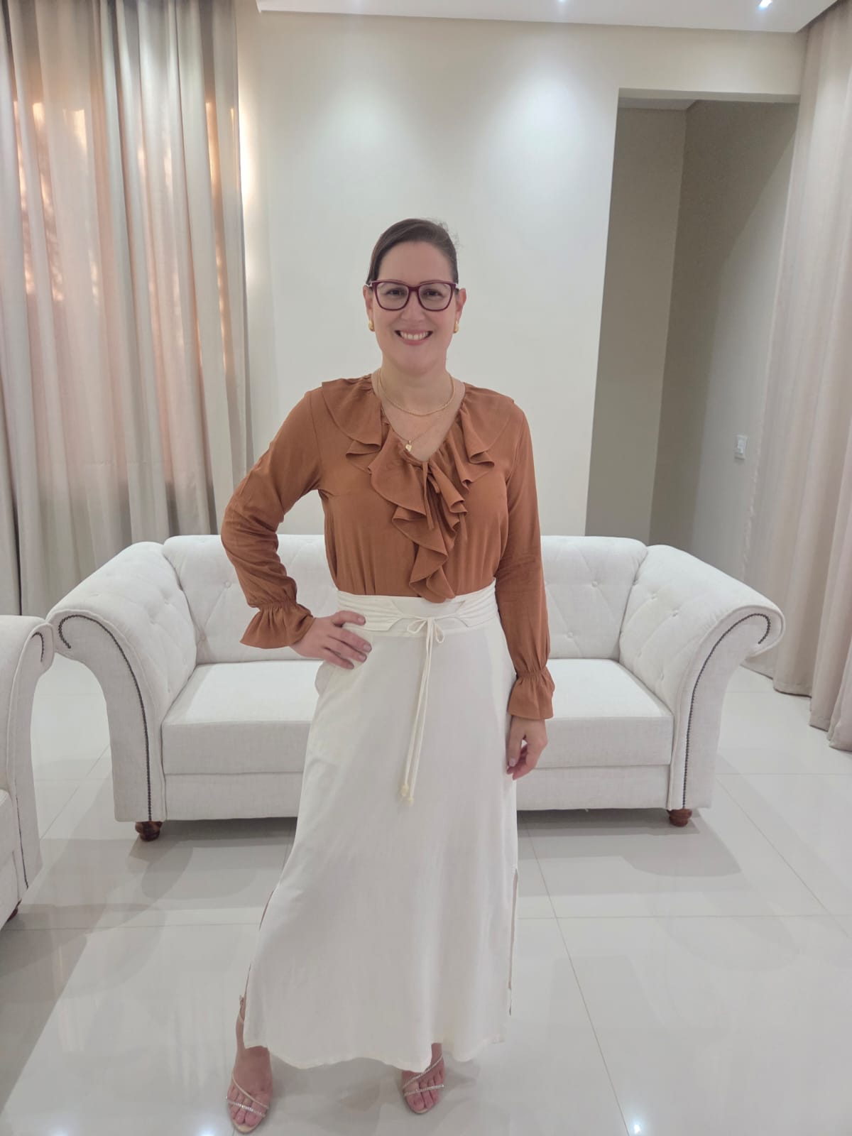Elegante e versátil, essa saia longa é perfeita para compor looks leves e sofisticados. Confeccionada em tecido leve e fluido, possui modelagem reta, cintura alta com detalhe de amarração e acabamento impecável, garantindo conforto e estilo em qualquer ocasião.