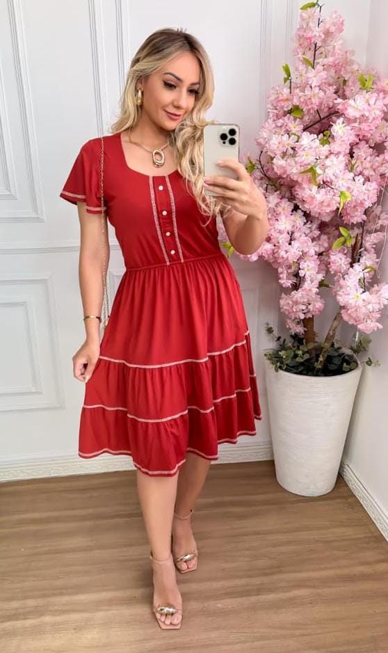 Vestido Cristã Terra Cotta com Detalhes em Branco – Elegância e Conforto em um Só Look! 🖤
